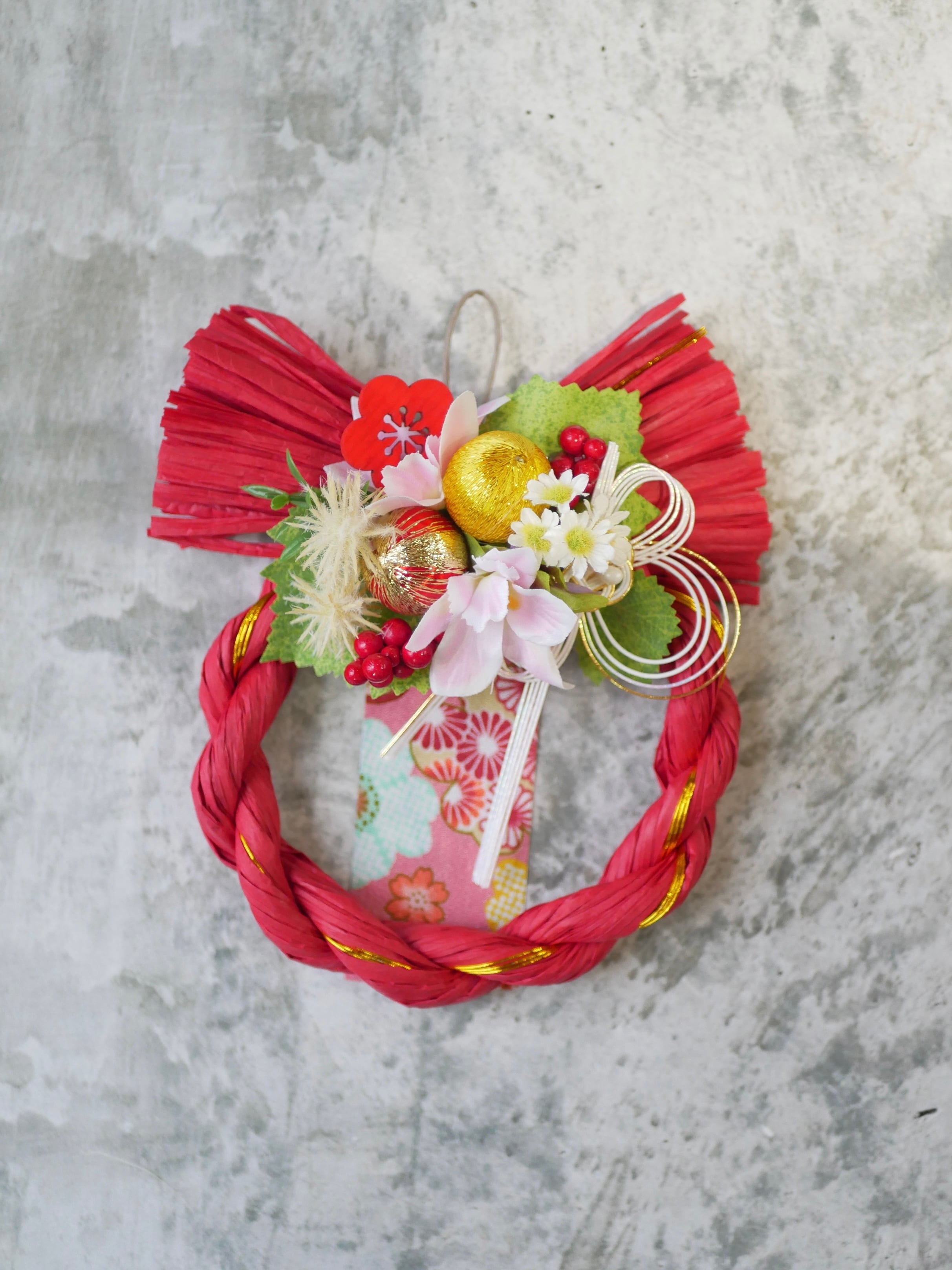 これぞ正月!赤が目を惹くしめ縄リース!